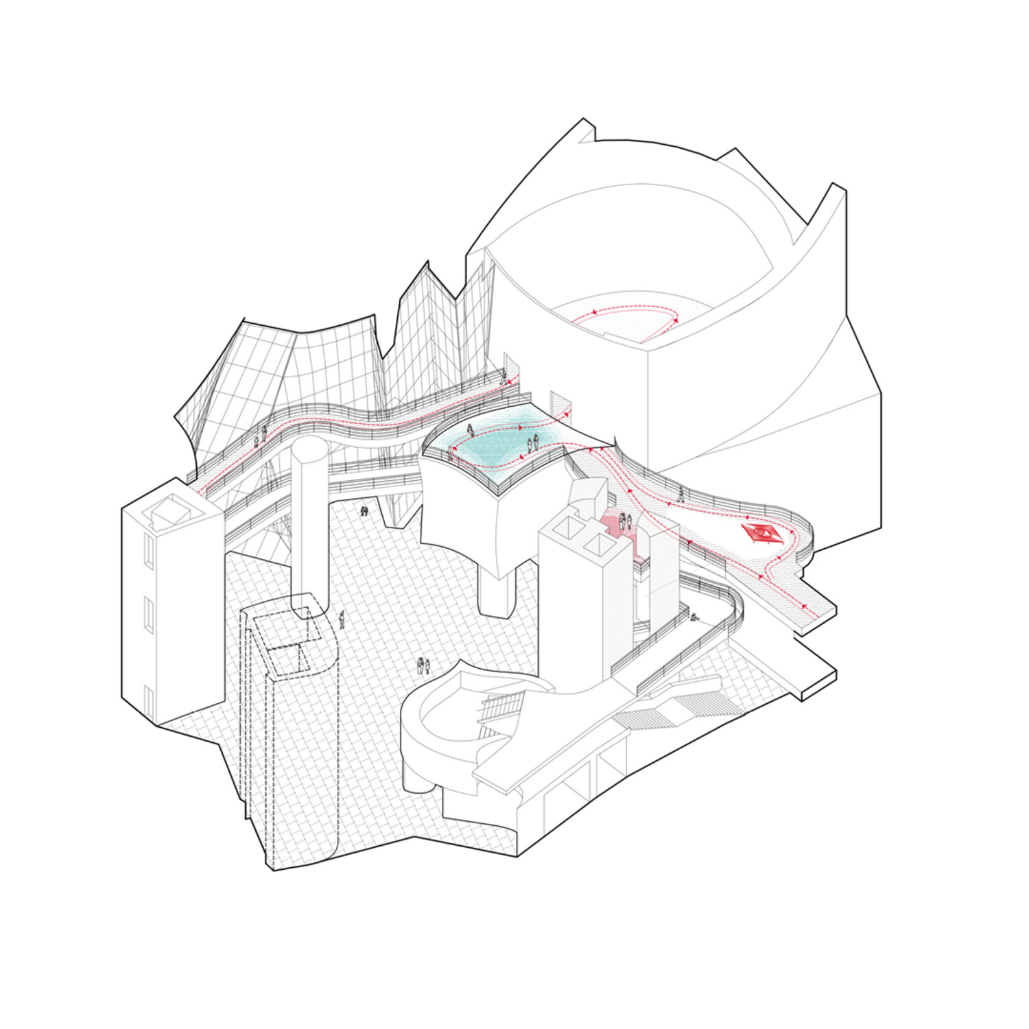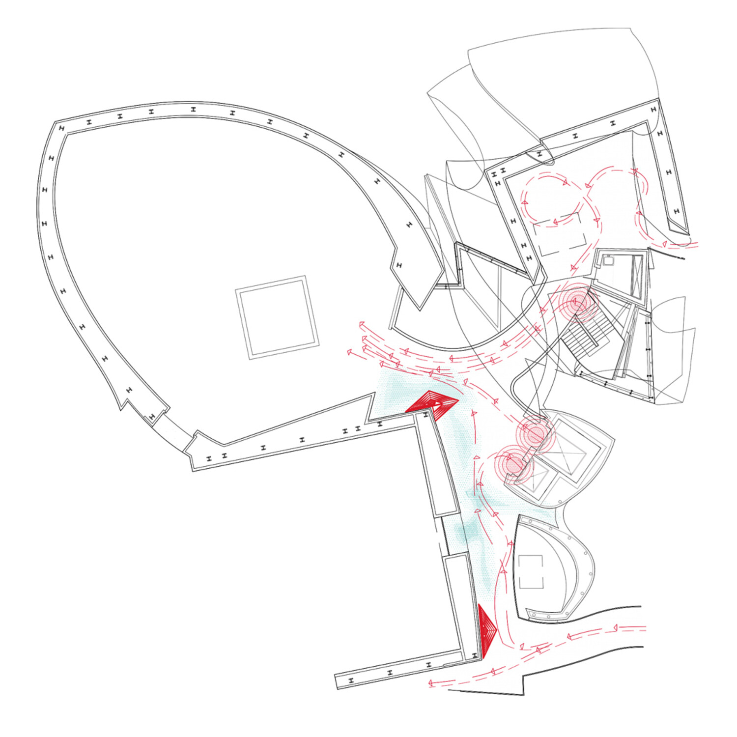 The museum, where apparently nothing changes, experiences continuous and subtle rearrangements. Coinciding with the newly opened third floor for the exhibit of the permanent collection, the space has recovered the original definition of its inauguration day, more open and loyal to the design by Frank Gehry, more permeable with the rescue of the original skylights. The three Argi-txinta (dayspring) units celebrate the optimistic openness that can be fully enjoyed in the museum.
