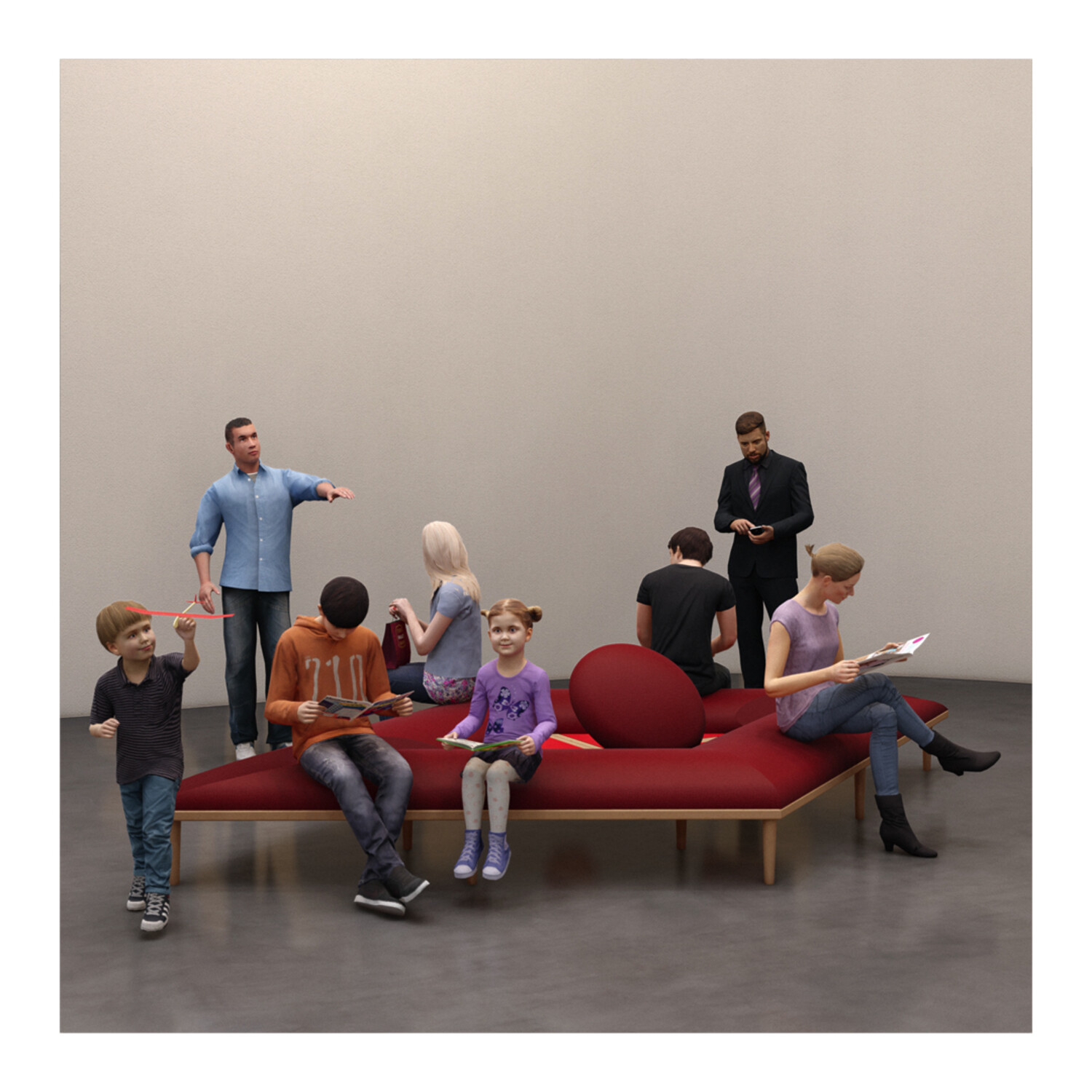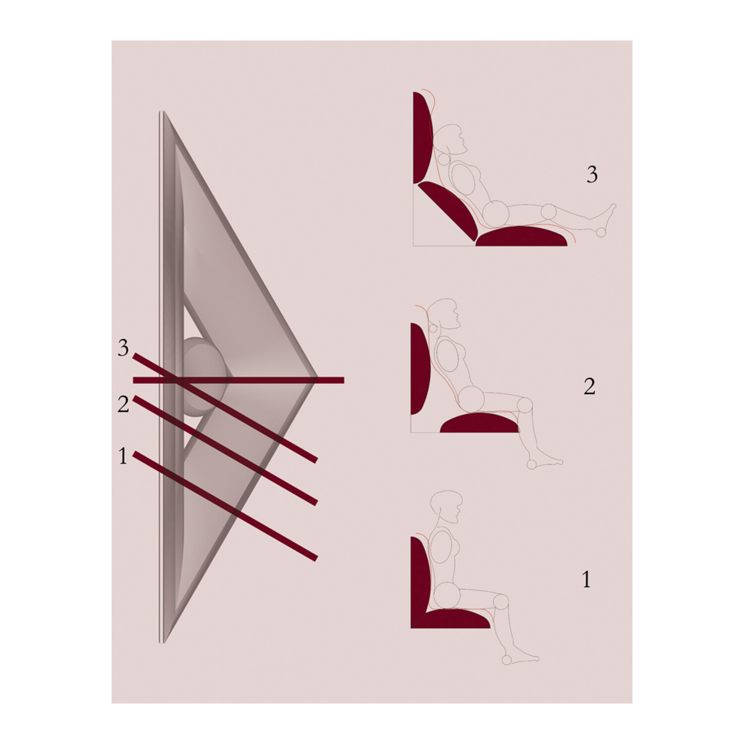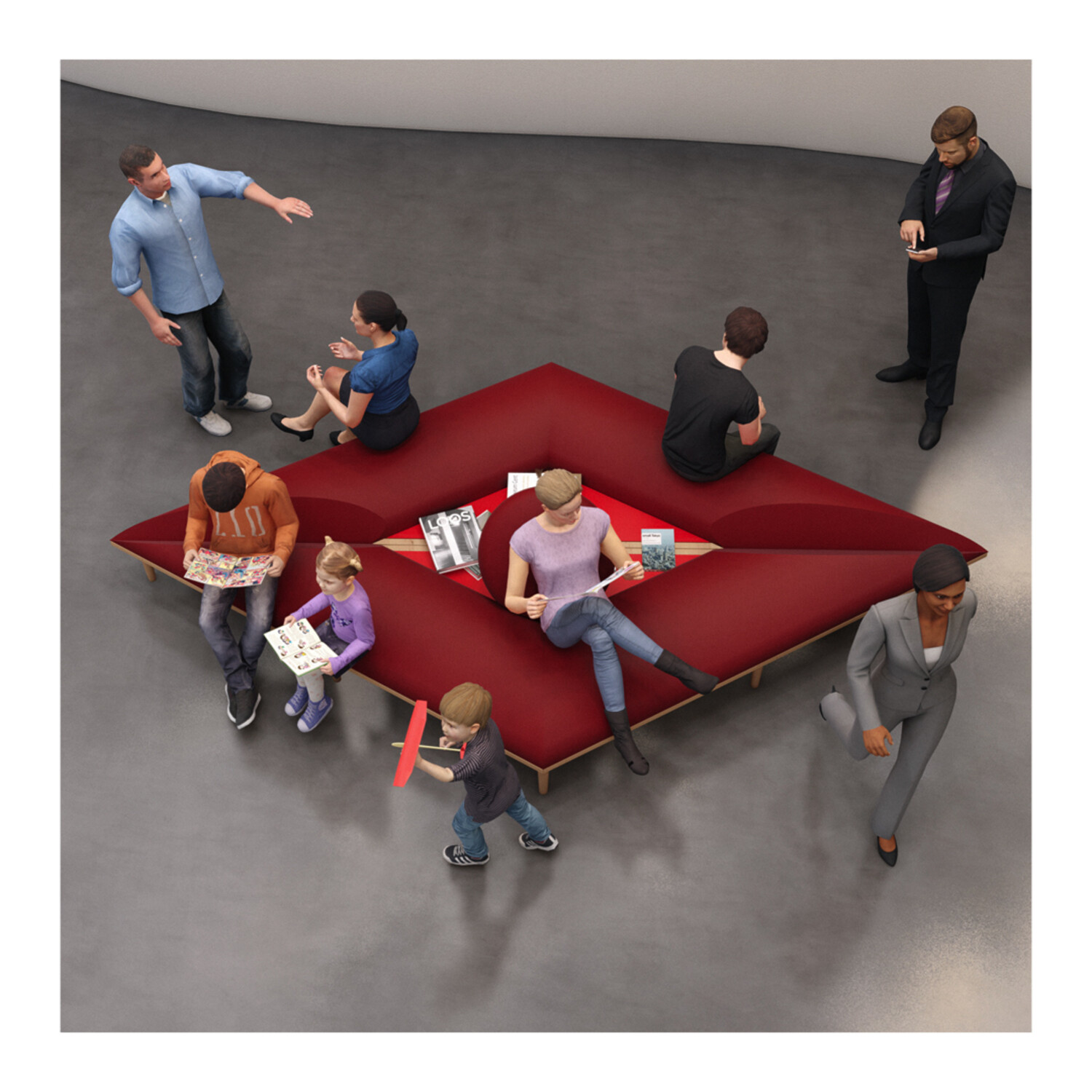 In each set, a freestanding backrest completes the ergonomics in the deepest central section and serves as a formal counterpoint, accentuating the playful invitation to use by the public.