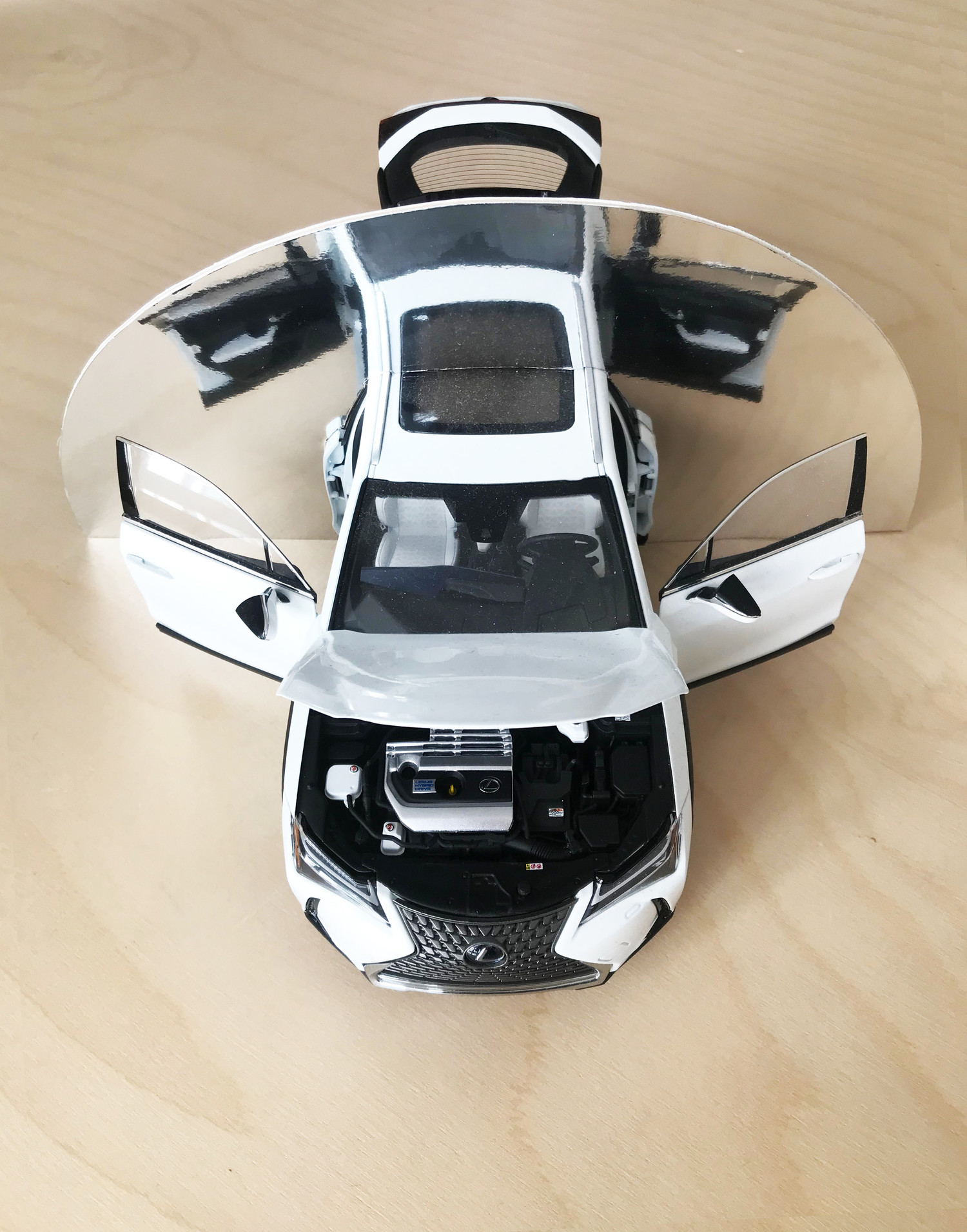 The opportunity to intervene on the Lexus UX helps us to rethink about the way of seeing and being seen, how to reinterpret an object without simply intervening from its projected image, its very reflection.