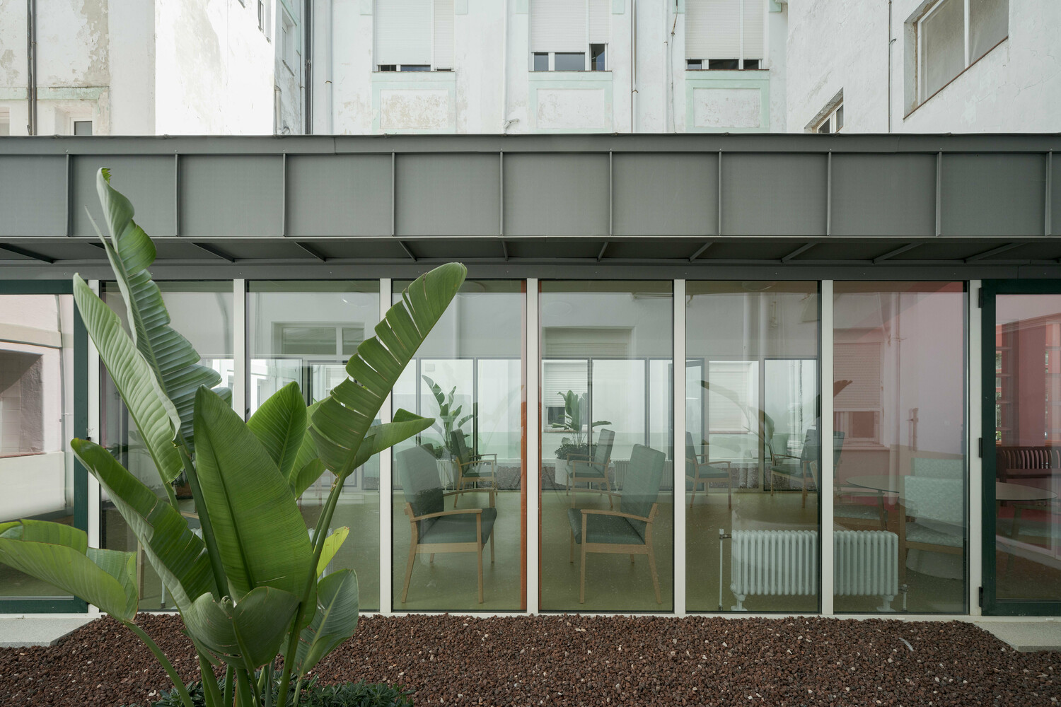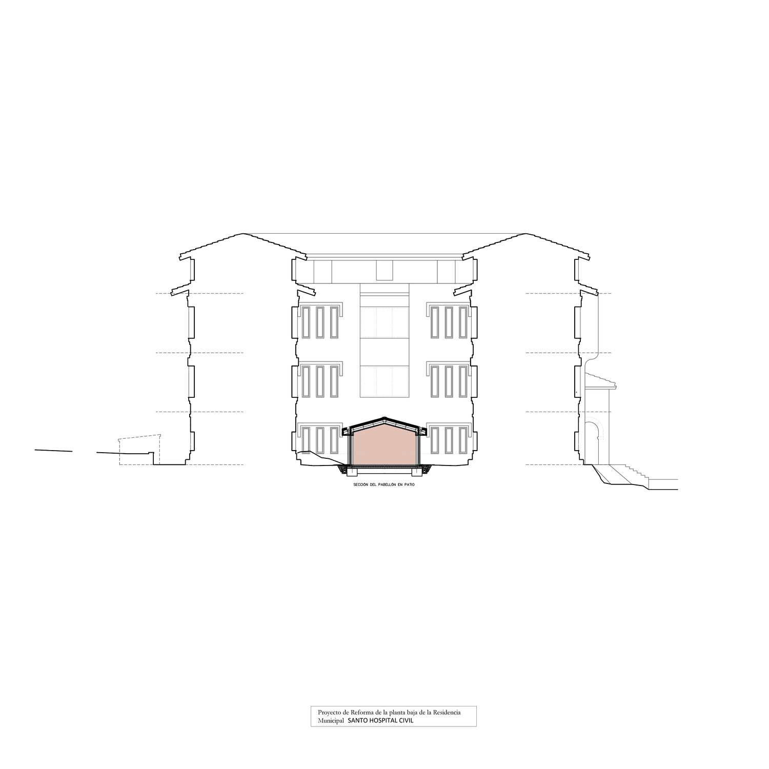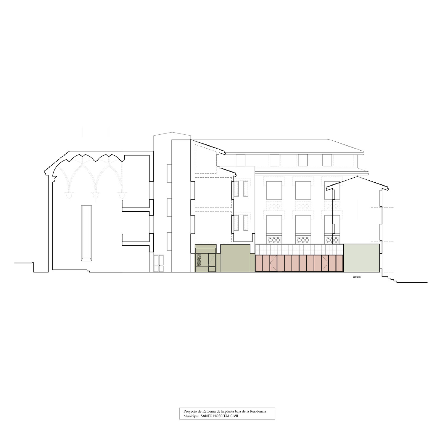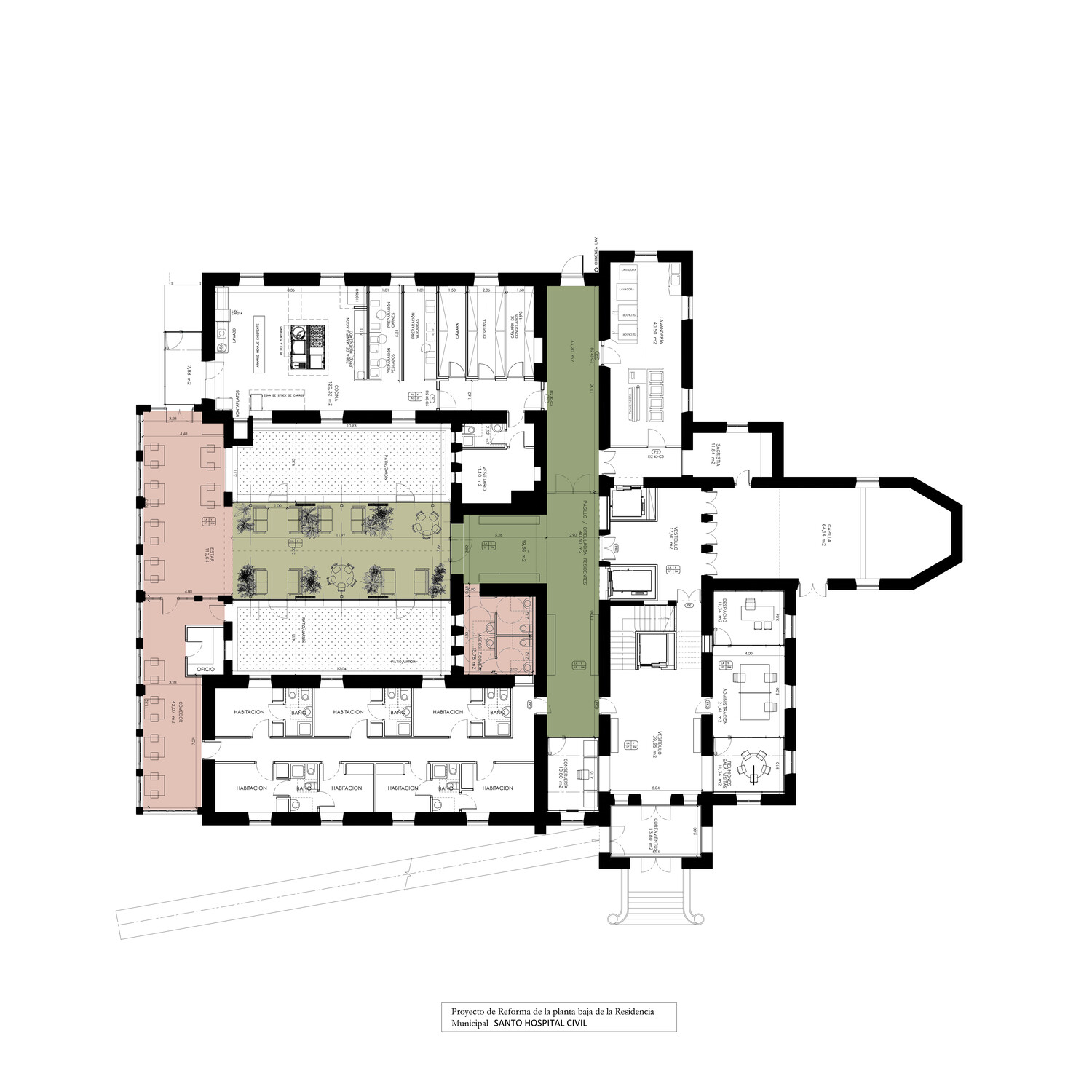 Since its construction, the building has undergone various periods of use and management, ceasing to be a hospital to become a residence for the elderly. These changes have involved architectural transformations in the building in order to adapt it to different program and occupation requirements, as well as to technical requirements to upgrade the facilities. The successive extensions and reforms have not always been carried out under an overall vision, giving rise to an unsatisfactory and somehow confusing result for the functionality expected of a collective residence.