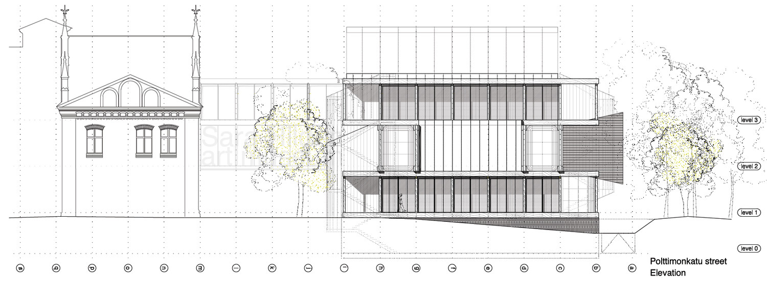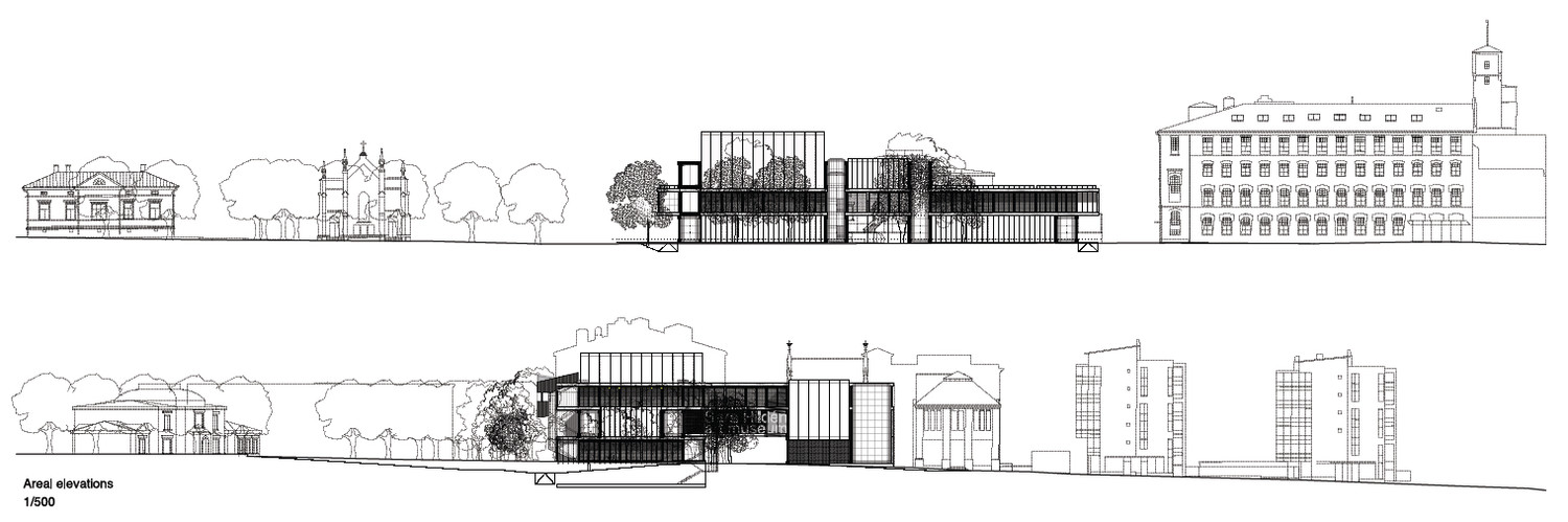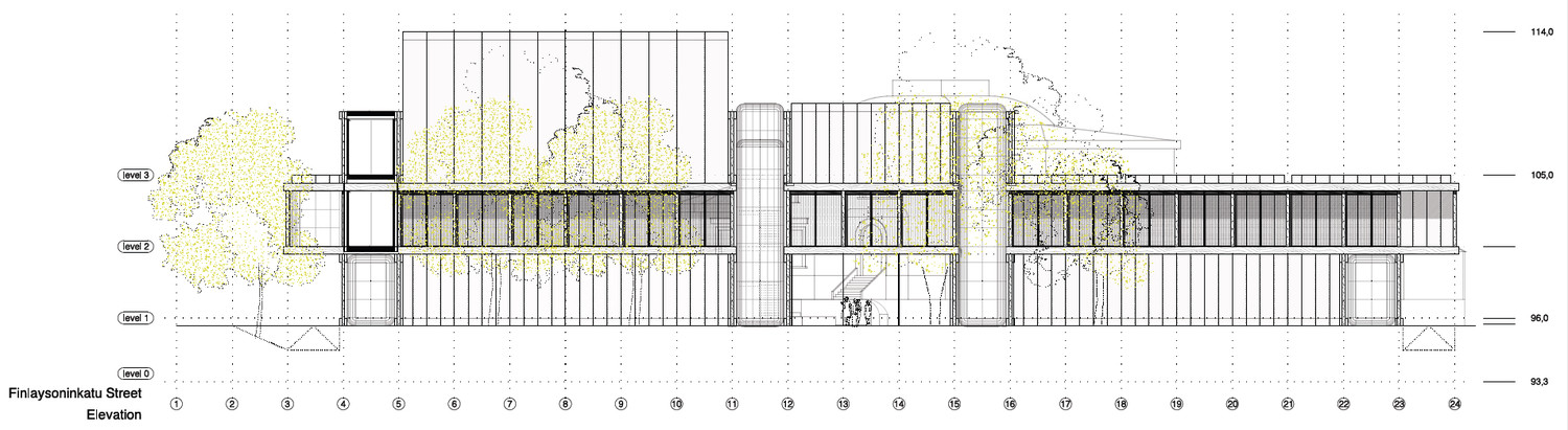 The new Sara Hildén Museum site occupies the intersection between the city’s grid plan area, the Finlayson factory and the park. Although all the area is urbanized from the 19th siècle with consecutives developments to now days, this condition of edge of the built up area facing the landscape towards the north is clearly present.